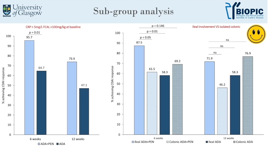 - White B, Campbell I, Fandinga C, et al. DOP100 Combination treatment with adalimumab and partial enteral nutrition compared with adalimumab monotherapy in adults with active Crohn’s disease: The BIOPIC study. 2026; J Crohns Colitis. 20(Suppl 1):jjaf231.137. doi: 10.1093/ecco-jcc/jjaf231.137.